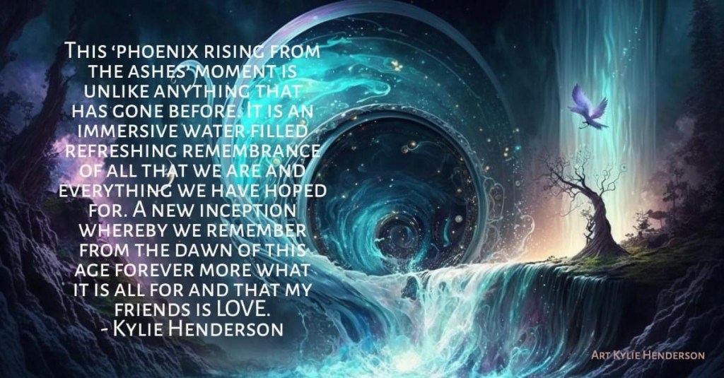 This ‘phoenix rising from the ashes’ moment is unlike anything that has gone before. It is an immersive water filled refreshing remembrance of all that we are and everything we have hoped for. A new inception whereby we remember from the dawn of this age forever more what it is all for and that my friends is LOVE.